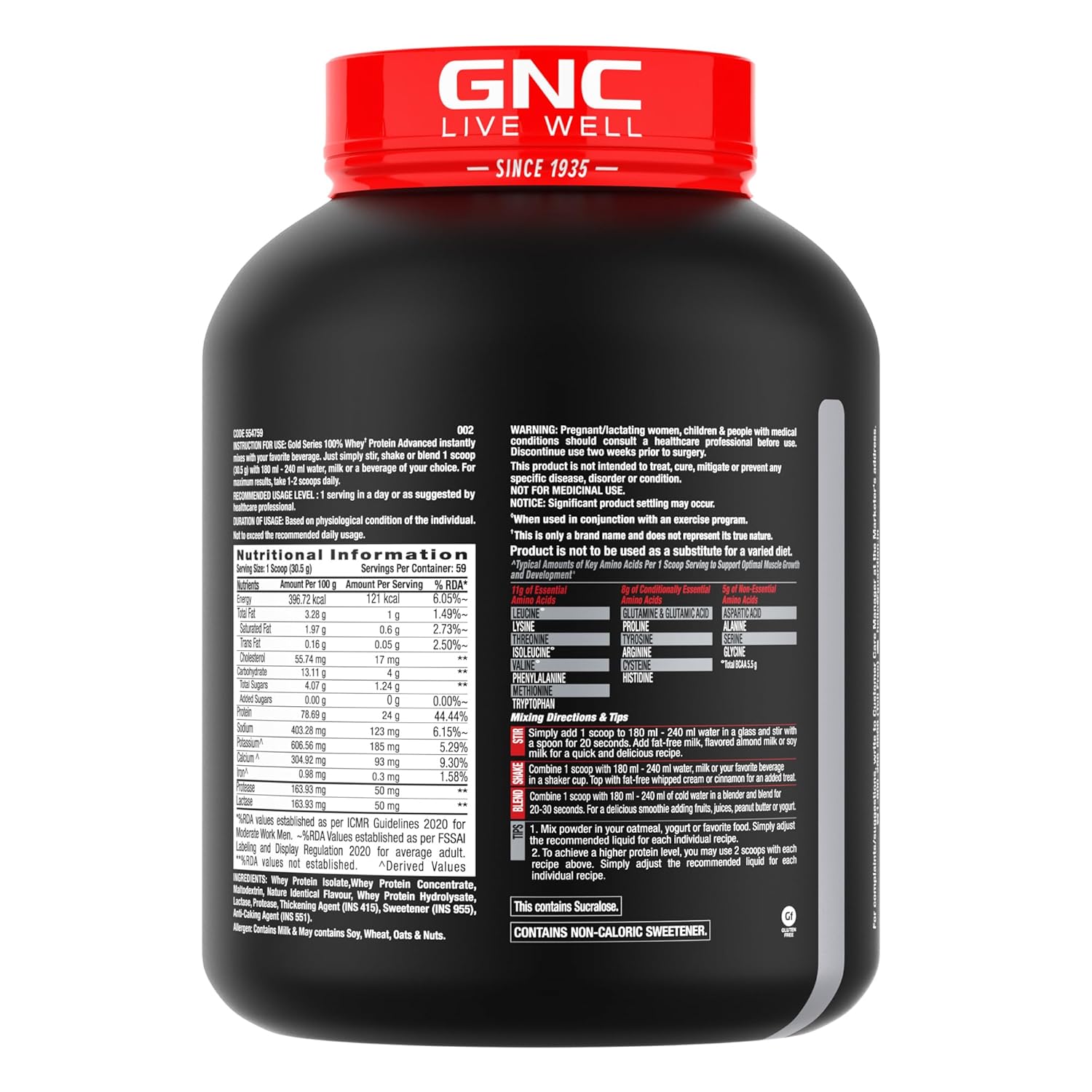 - ULTRA-FILTERED WHEY: GNC AMP Gold Advanced protein powder (59 Servings) features a 100% pure, ultra-filtered protein blend with fast-digesting whey protein isolate, whey protein concentrate, and whey protein hydrolysate to level up your exercise performance. Its ultra-filtered form enables easy absorption and improved metabolism.
