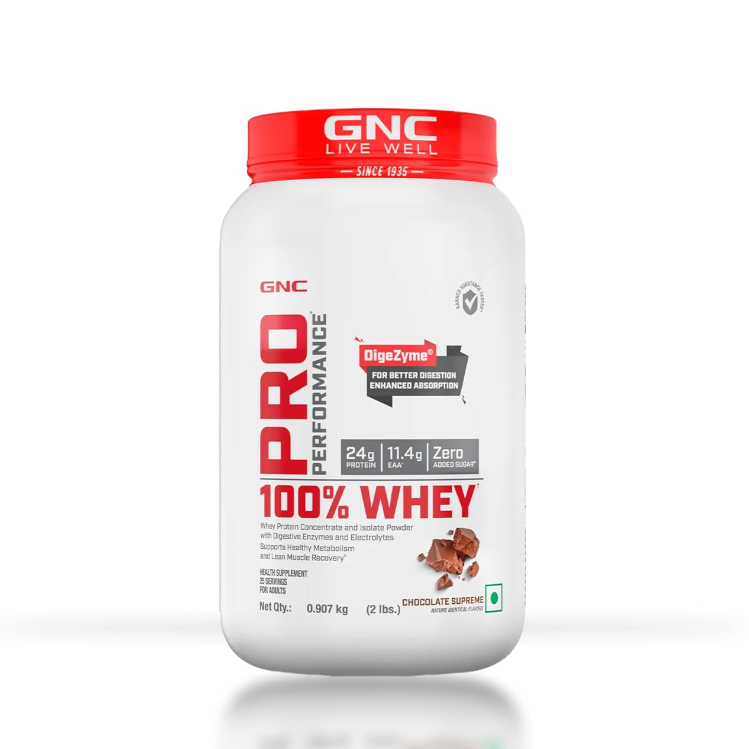 GNC Pro Performance 100% Whey Protein | Muscle Growth | Muscle Recovery | DigeZyme® For Easy Digestion | Informed Choice Certified | 24g Protein | 5.5g BCAA
