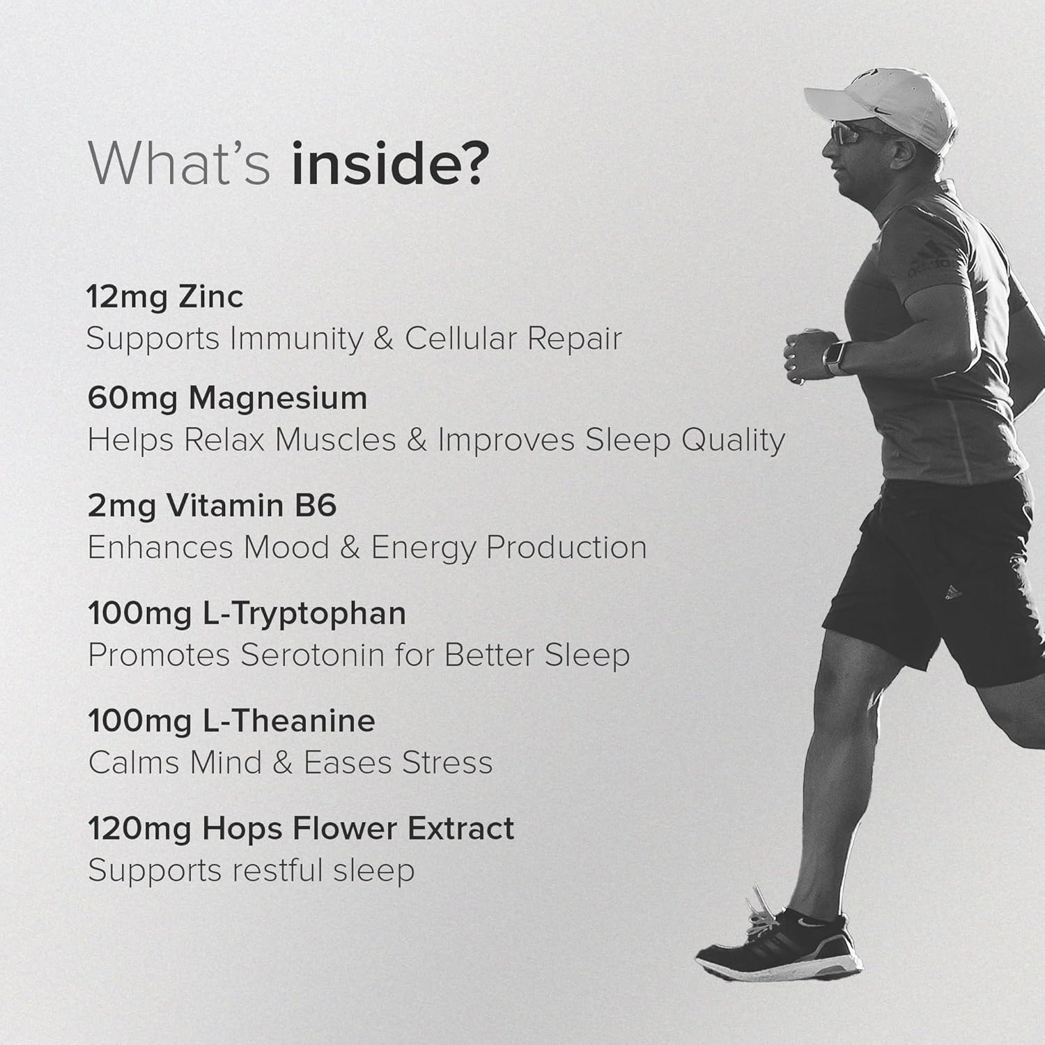 - ššŗš½šæš¼šš²š± šš¼šæšŗšš¹š®šš¶š¼š» š³š¼šæ šš š°š²š½šš¶š¼š»š®š¹ šš³š³š¶š°š®š°š : Features 60mg Magnesium Aspartate, 12mg Zinc-led ZMA complex with added hops flower extract (120mg), Vitamin B6 (2mg), and essential amino acids like L-tryptophan (100mg) and L-theanine (100mg) for superior performance.Ā