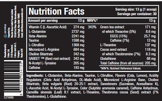 Power Pack: Maximizes your energy and endurance before workout with 2241mg Beta-Alanine per serving | 193mg Caffeine per serving.