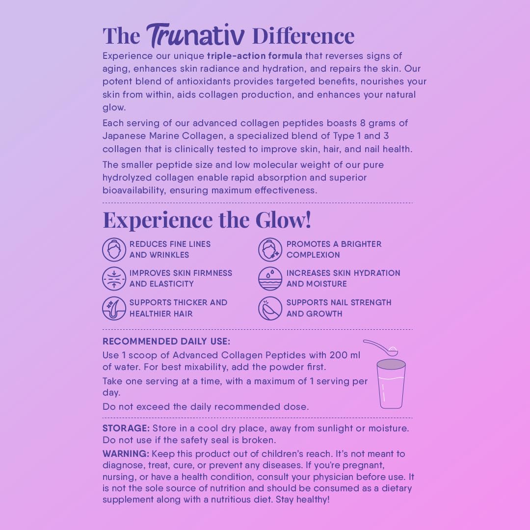 Trunativ Advanced Japanese Marine Collagen Powder |Type 1 and 3 | Supplements for Women and Men with Hyaluronic Acid | Supports Skin Glow, Hair Growth and Nail Strength | 200 Gm